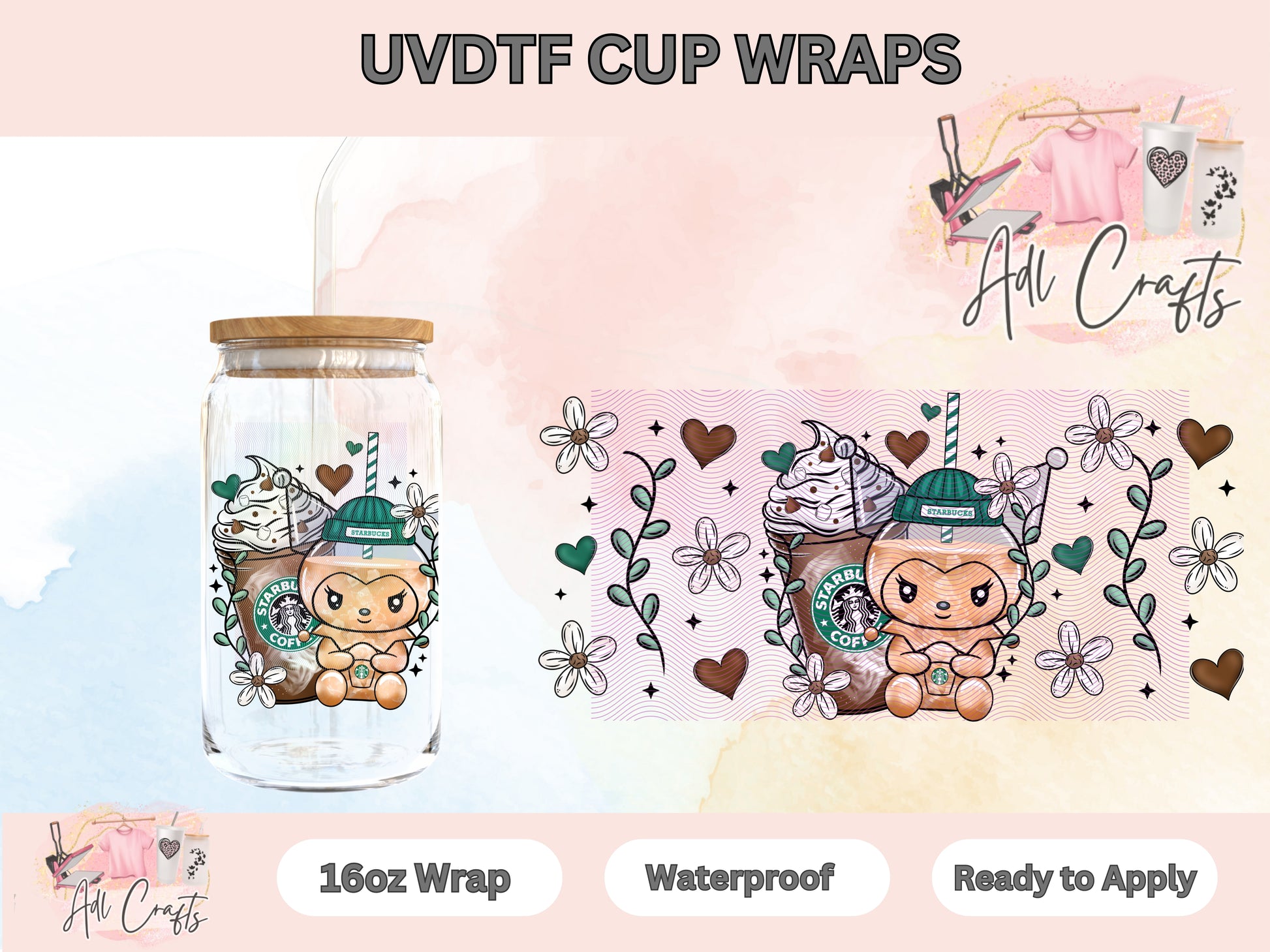 This listing is for 1 UV DTF 16 oz cup wrap only. (does not include the glass cup)