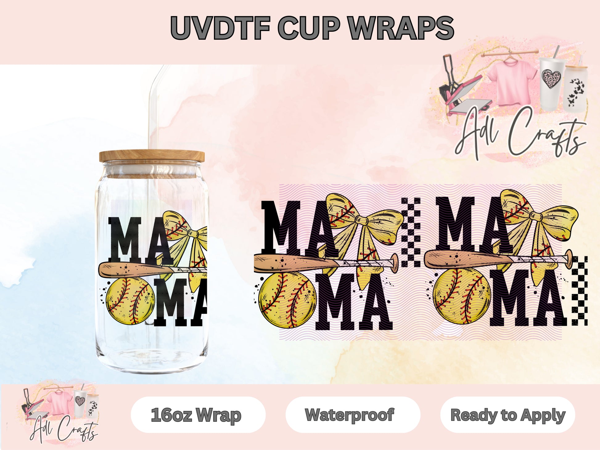 Uvdtf Softball Mama coquette Cup wraps
